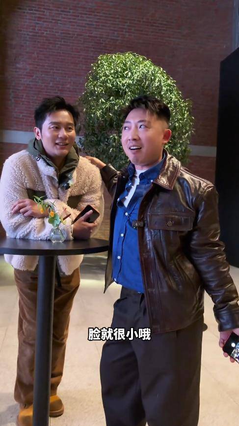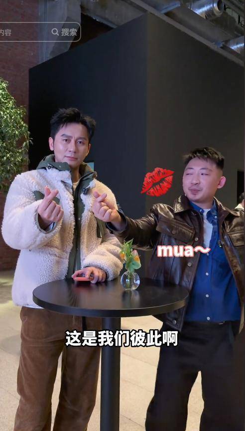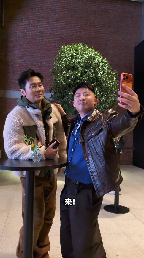 反观身旁的网红,倒是大方自然,还不时轻拍他的肩膀,语气随意地调侃几句。