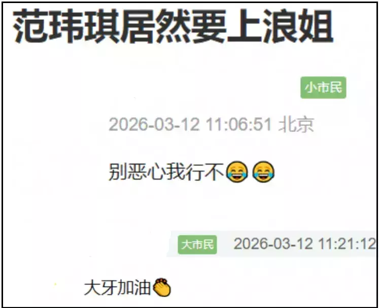 早就有网友指出,范玮琪之所以积极在内地活动,是因为她在老家台湾省混不下去了,只要范玮琪一露面,她的评论区就会有人喊出那句“大牙加油!”。