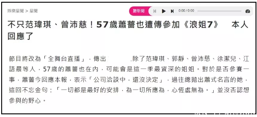 萧蔷接受台媒采访,明确表示公司和节目组进行了洽谈,还没有完全决定,台媒更是直接在标题强调范玮琪等人要参加节目,进一步引发了网友抵制。