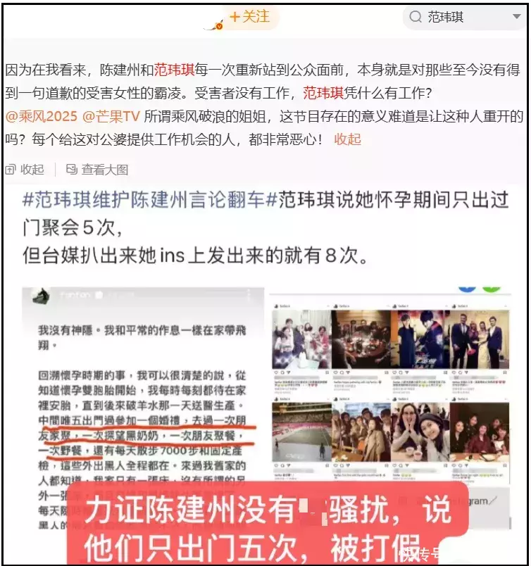 目前已有网友发布长文,再次提及黑范夫妻的恶劣行径,喊话《浪姐》节目组抵制范玮琪。